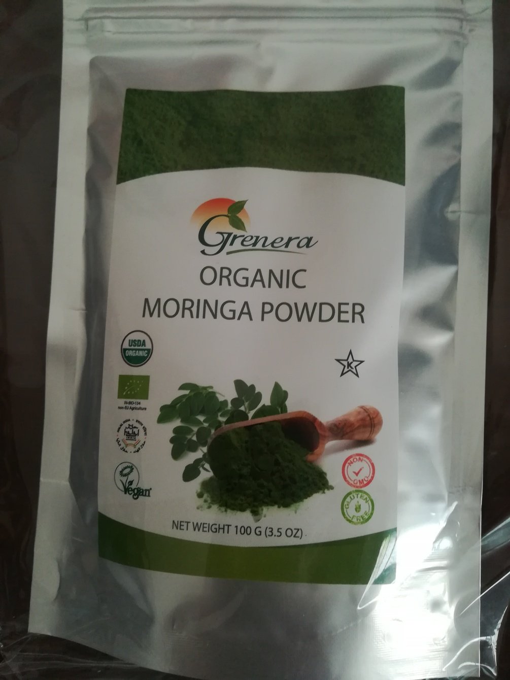 100% High Quality ORGANIC Moringa Powder (with absolutely no additives or fillers). Our moringa leaves dried and processed at very low temperatures throughout all stages of powder production. This allows the powder to retain the vibrant green colour of the original leaves and along with high levels of nutrients. Our leaf powder is also sieved through a fine mesh, which makes it a micro powder, and much easier to mix into drinks and warm water.