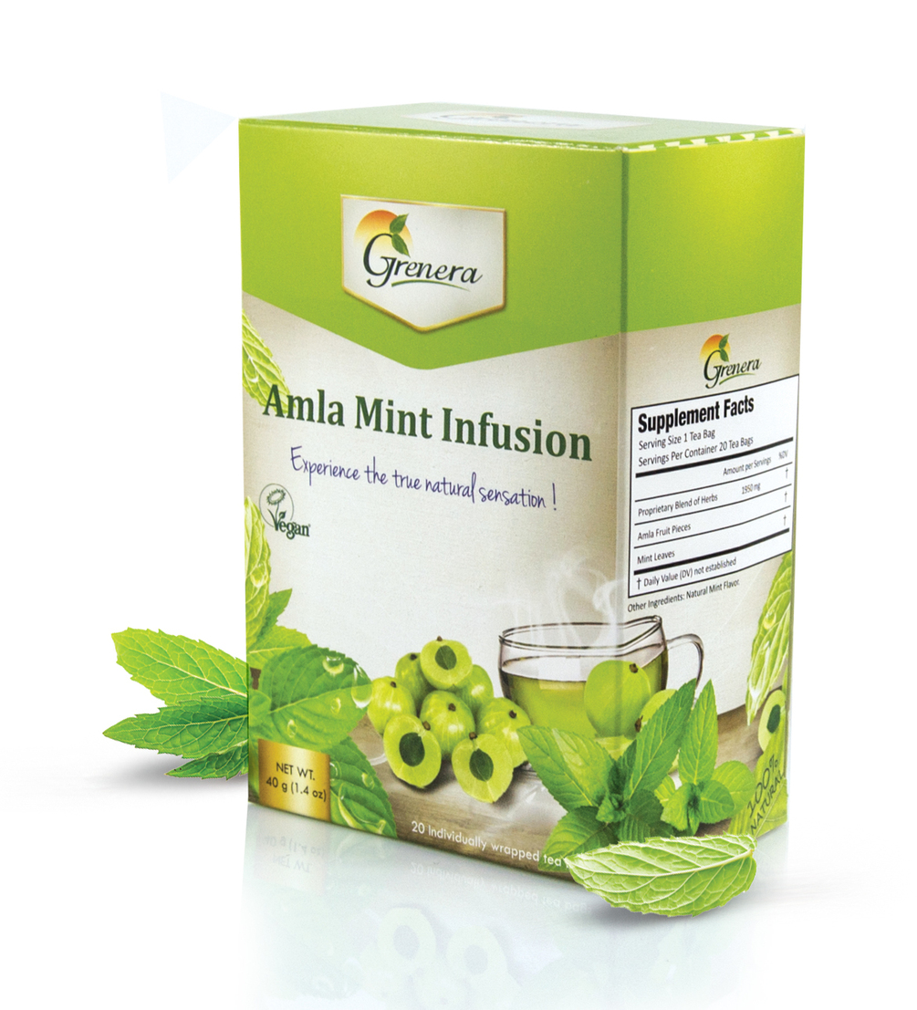 Ingredients: Dried Amla Pieces, Amla Fruit Powder, Dried Mint Leaves, Natural Mint Flavor